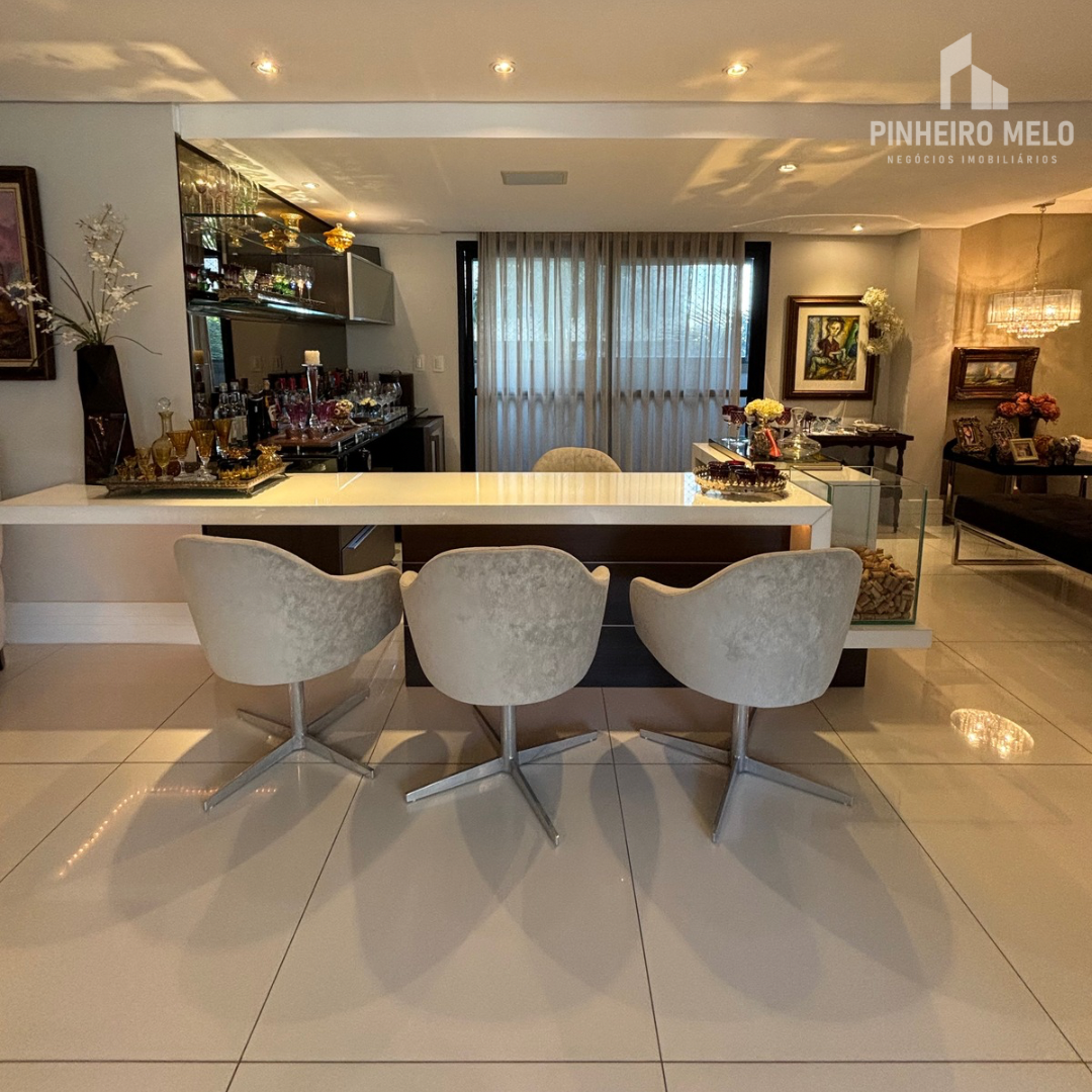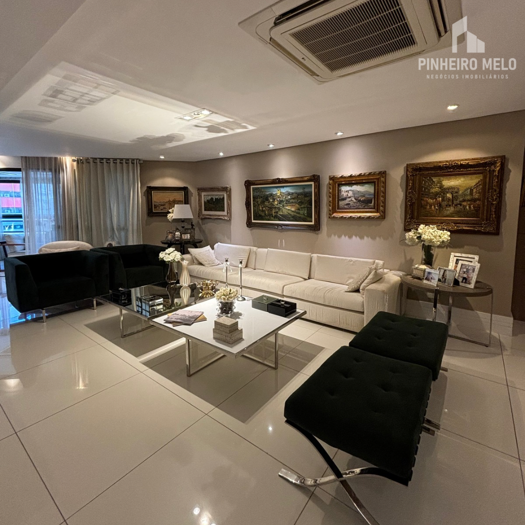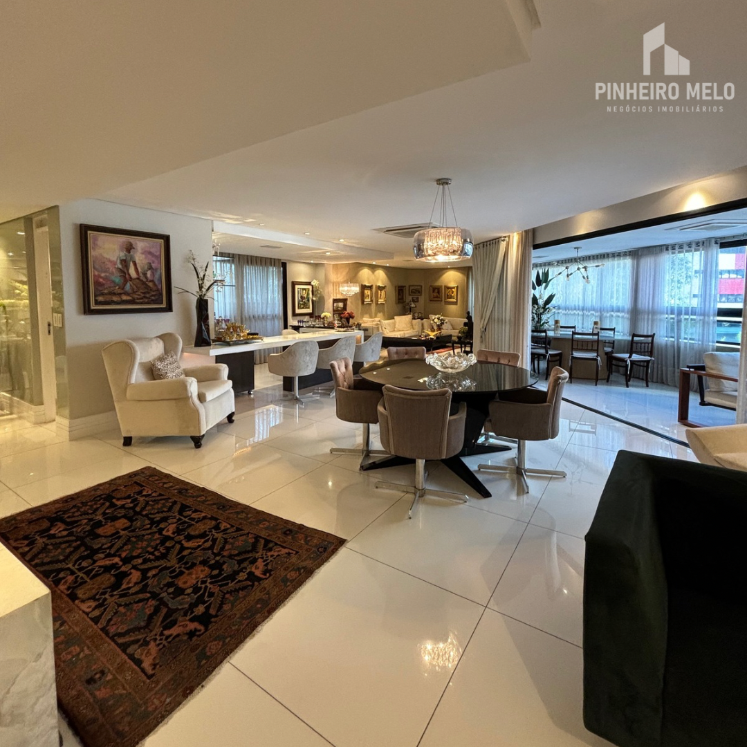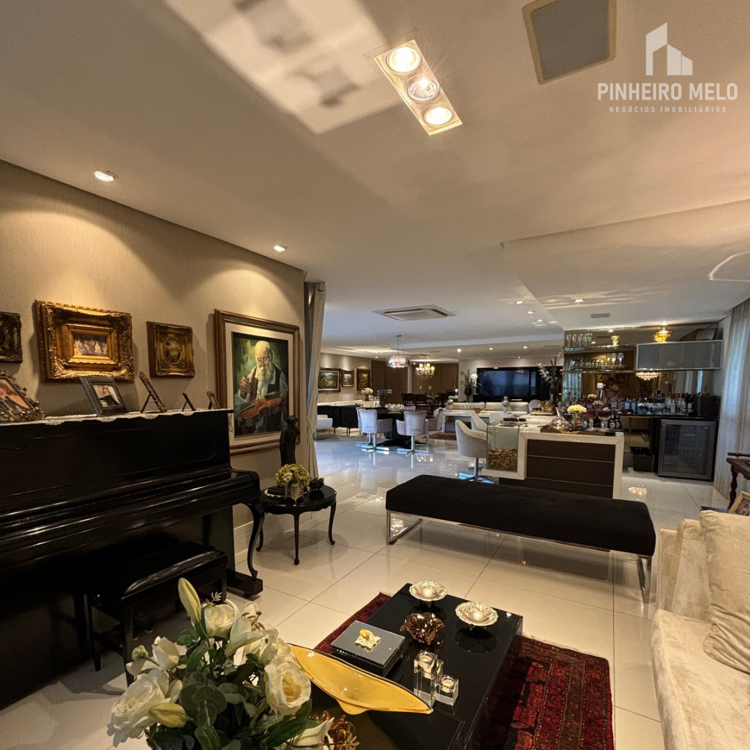 Este apartamento no Meireles oferece 448m² muito bem distribuídos, com 3 suítes amplas, uma sala de estar e jantar integrada e extremamente espaçosa, varanda com uma vista encantadora, 4 banheiros e 4 vagas de garagem.