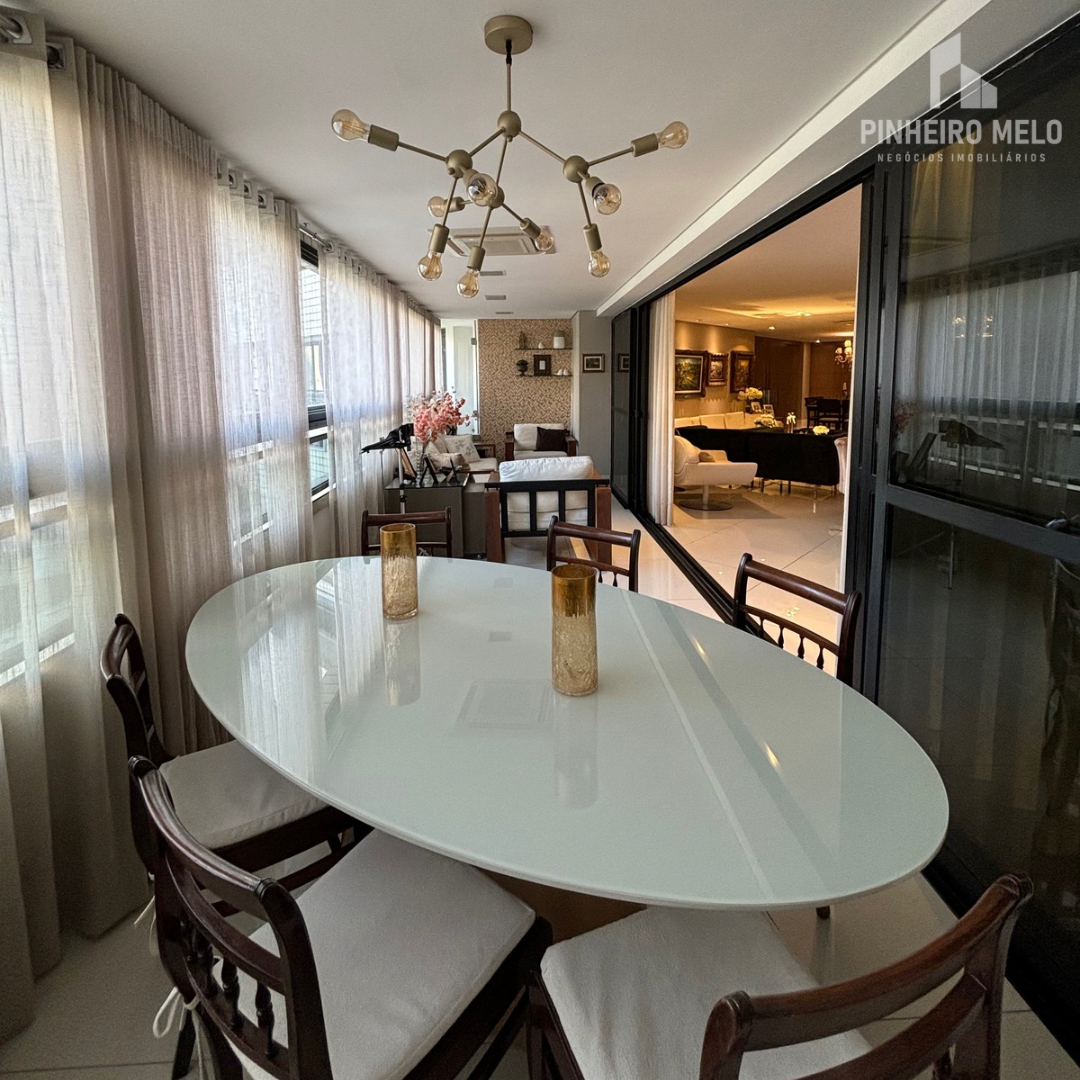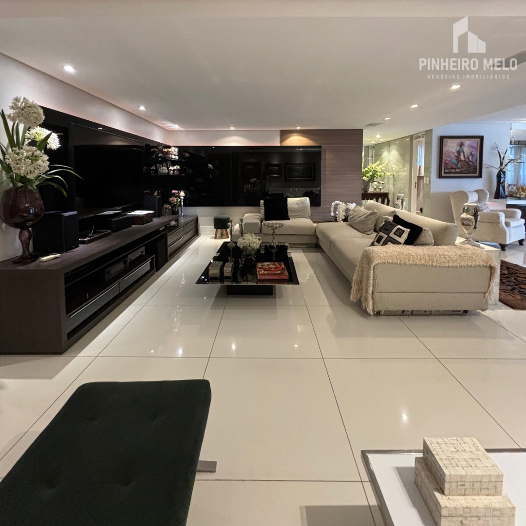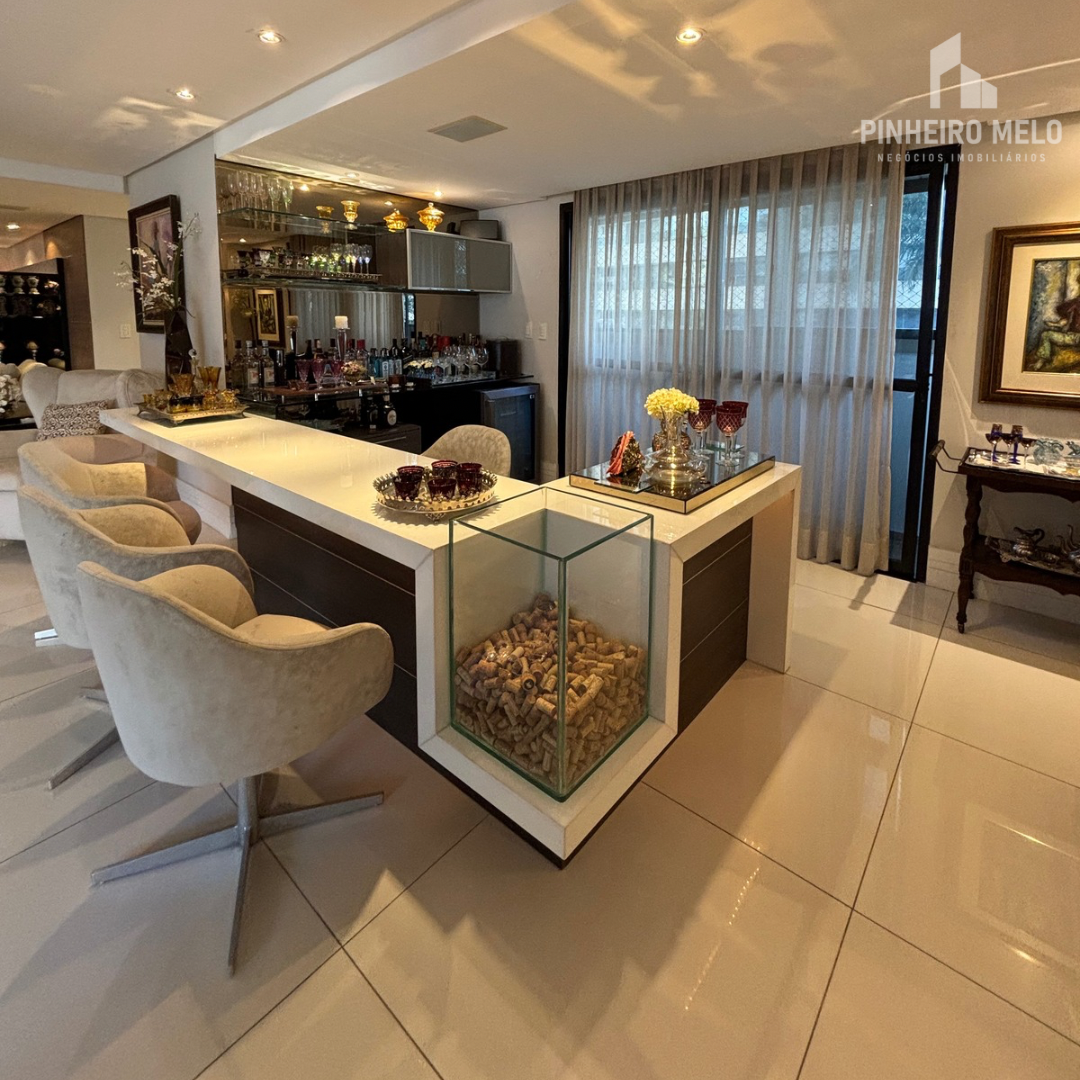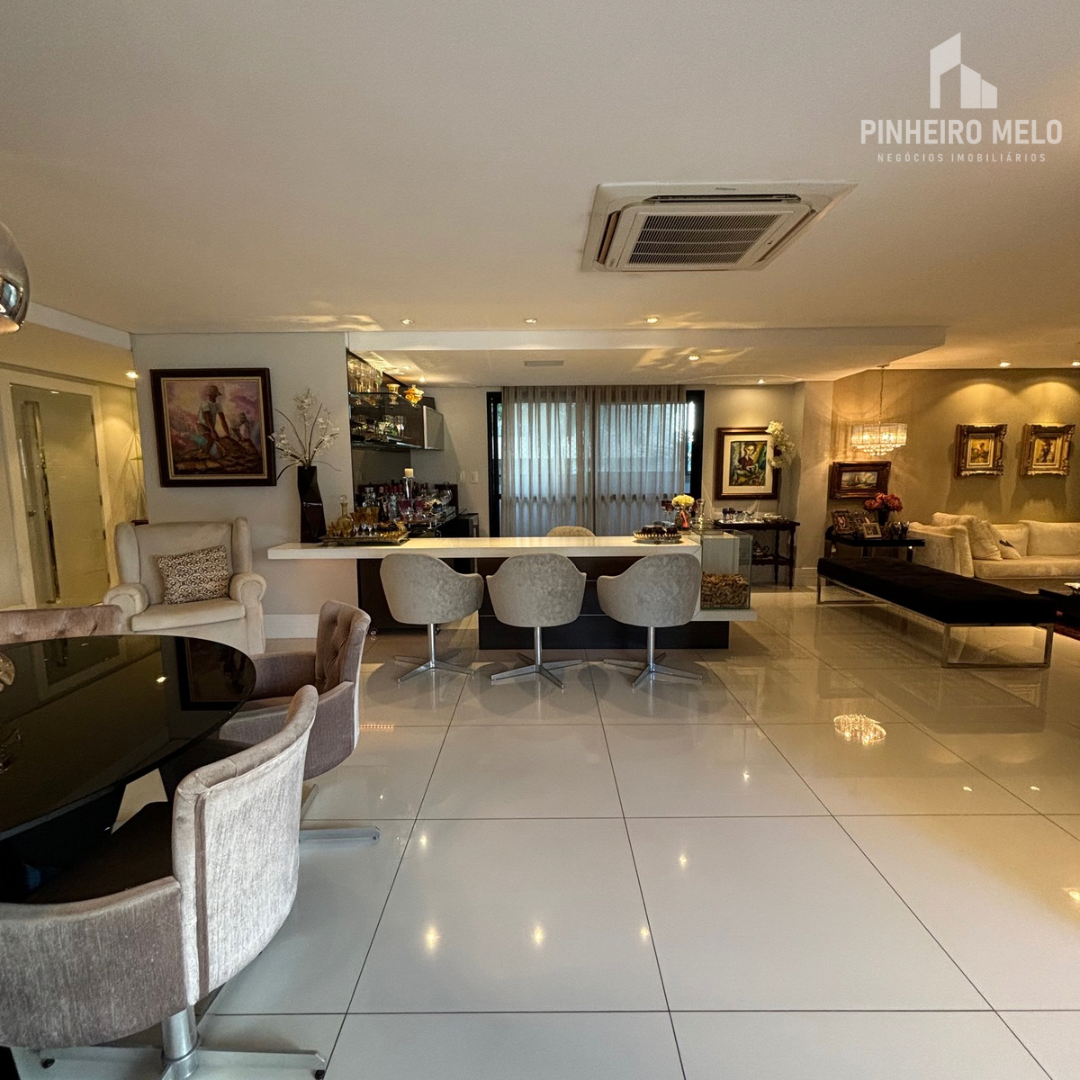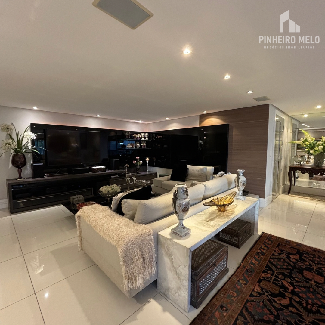Este apartamento no Meireles oferece 448m² muito bem distribuídos, com 3 suítes amplas, uma sala de estar e jantar integrada e extremamente espaçosa, varanda com uma vista encantadora, 4 banheiros e 4 vagas de garagem.